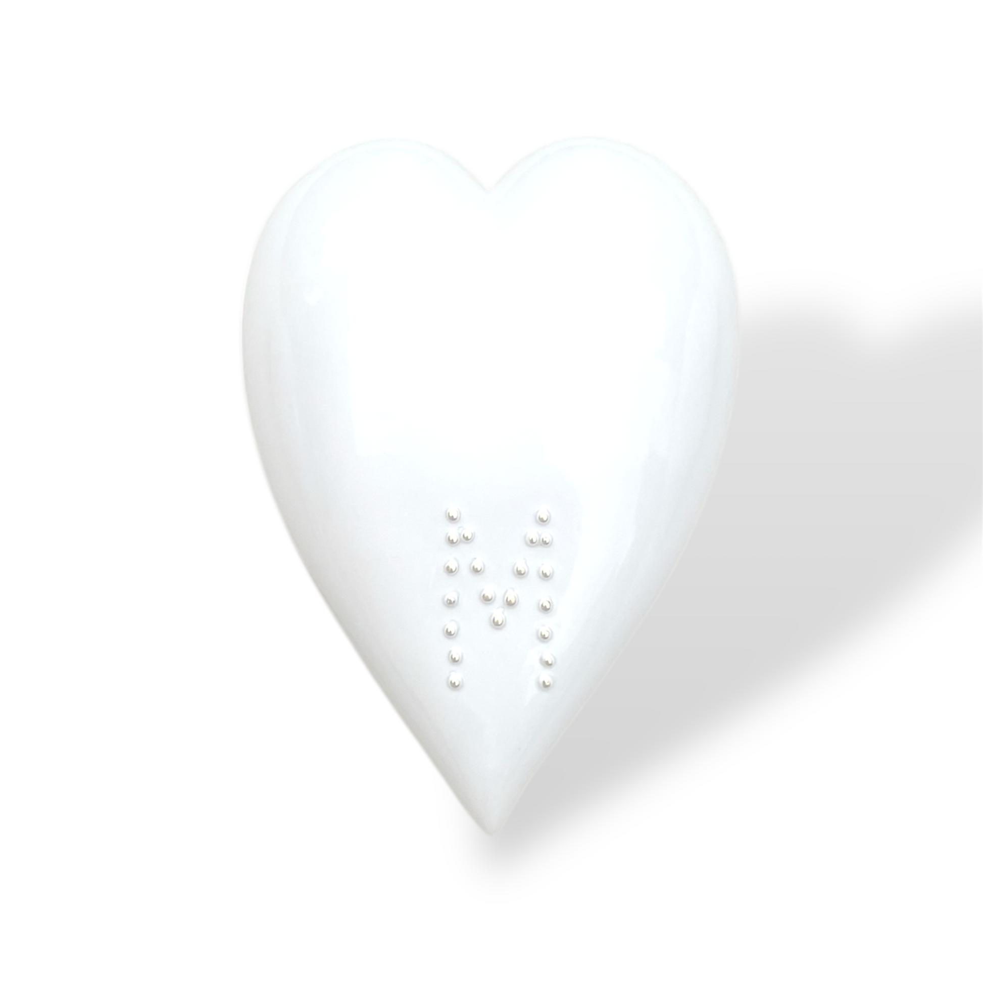 Introducing our exquisite porcelain love heart featuring finished initials. Crafted with care and designed with elegance, this unique piece is the perfect symbol of lasting love. The beautifully detailed silver finished initial add a personalized touch.